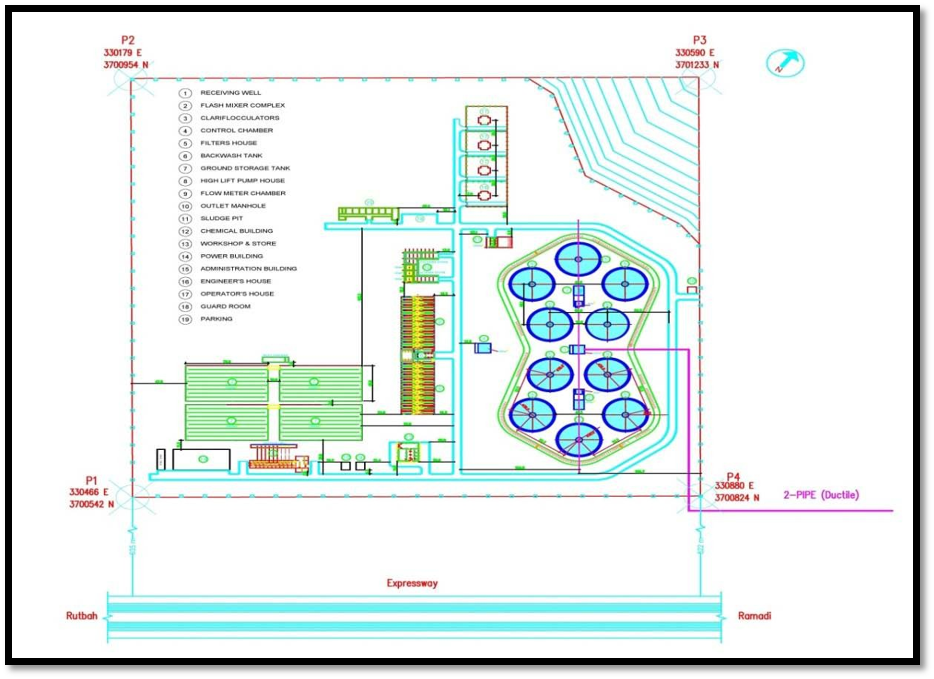 Design and Construction of a new water treatment plant in Al-Ramadi with (10000 m3/ hr.) including the pipelines networks